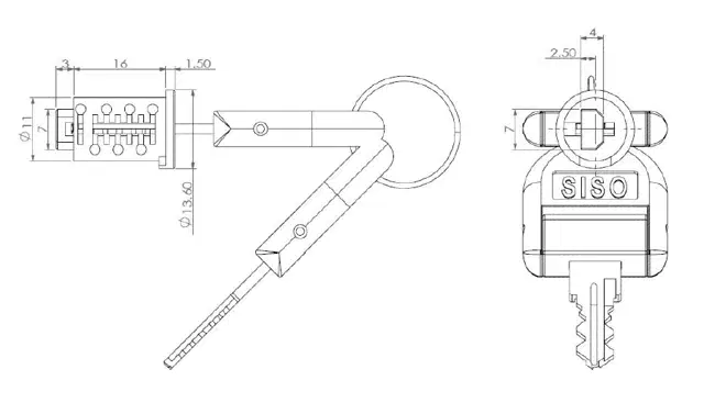 Lock cylinder with two keys.