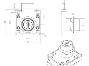 Furniture lock with key MIC-850, ø19x22mm, #J12, right, NPL, interchangeable cylinder, with Master Key system