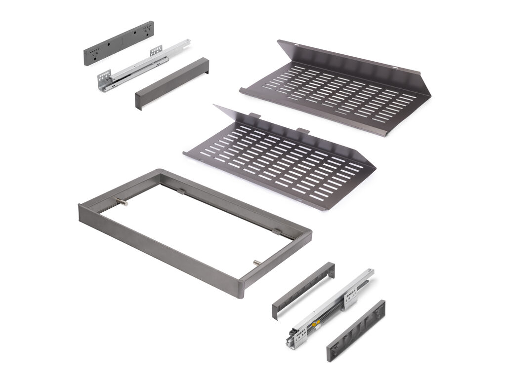 Pull-out shoe drawer Quartz with frame M70 L662-688mm, perforated base, SOFT, steel/titanium