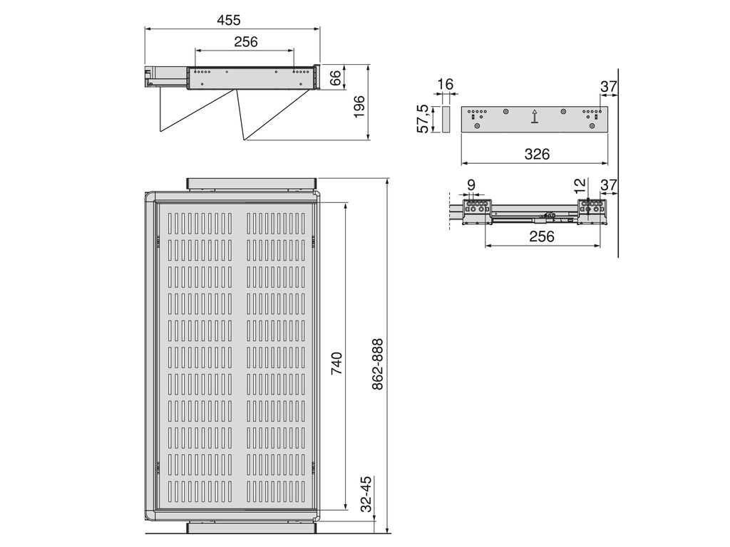 Laius: 862mm-888mm