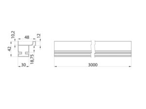 Handle profile UMO-995 (L-shape) L3000mm, 57mm x 25mm, aluminium/white matt