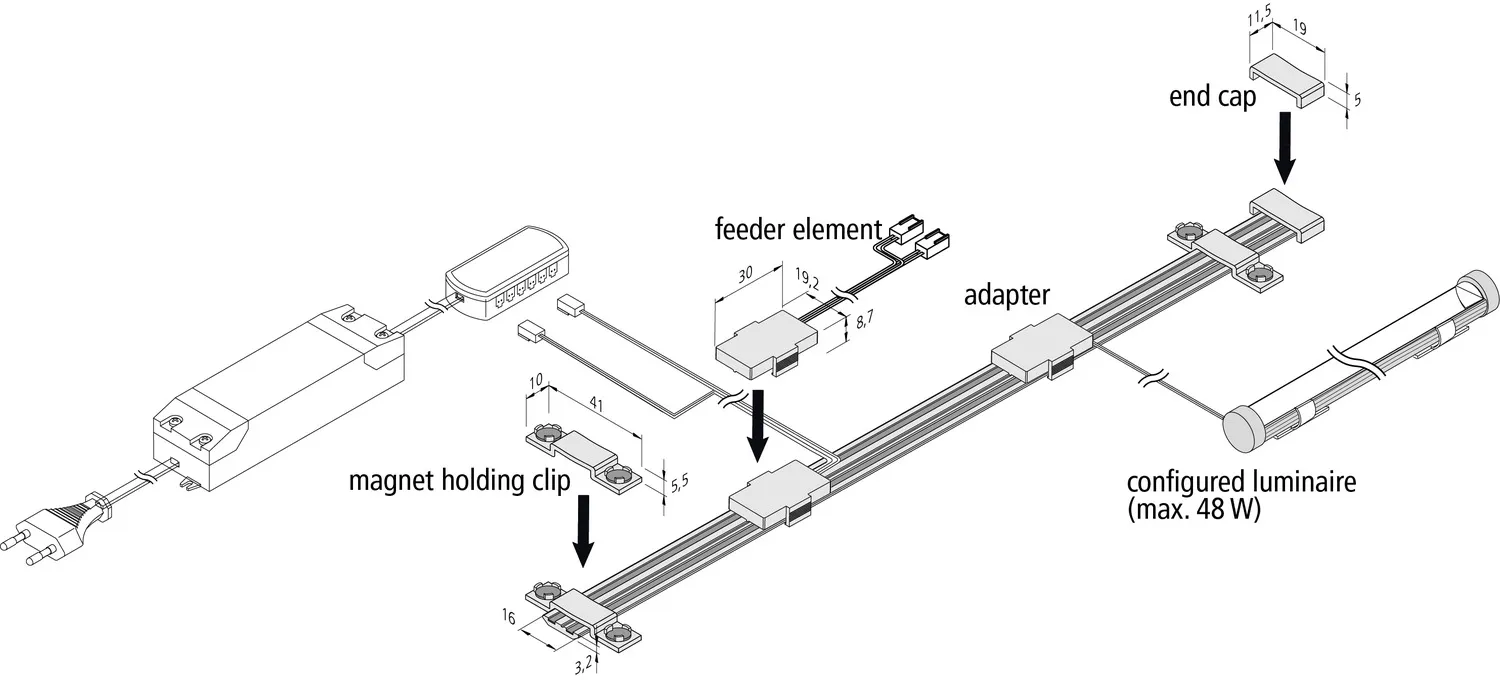 Adapter toitele/valgustitele FLAT-TRACK juhe 2.5m, plastik/hall