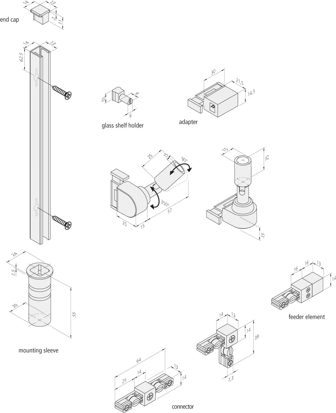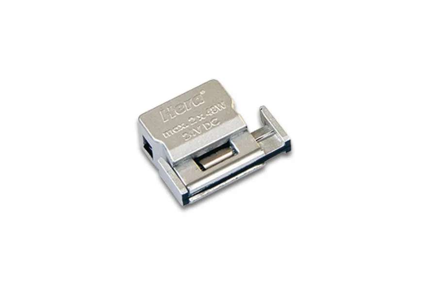 Adapter LED-voolusiinile, varustatud kahe 24 V LED-ühendusega. Võimaldab ühe toiteallikaga ühendada ja toita kahte riiulit.