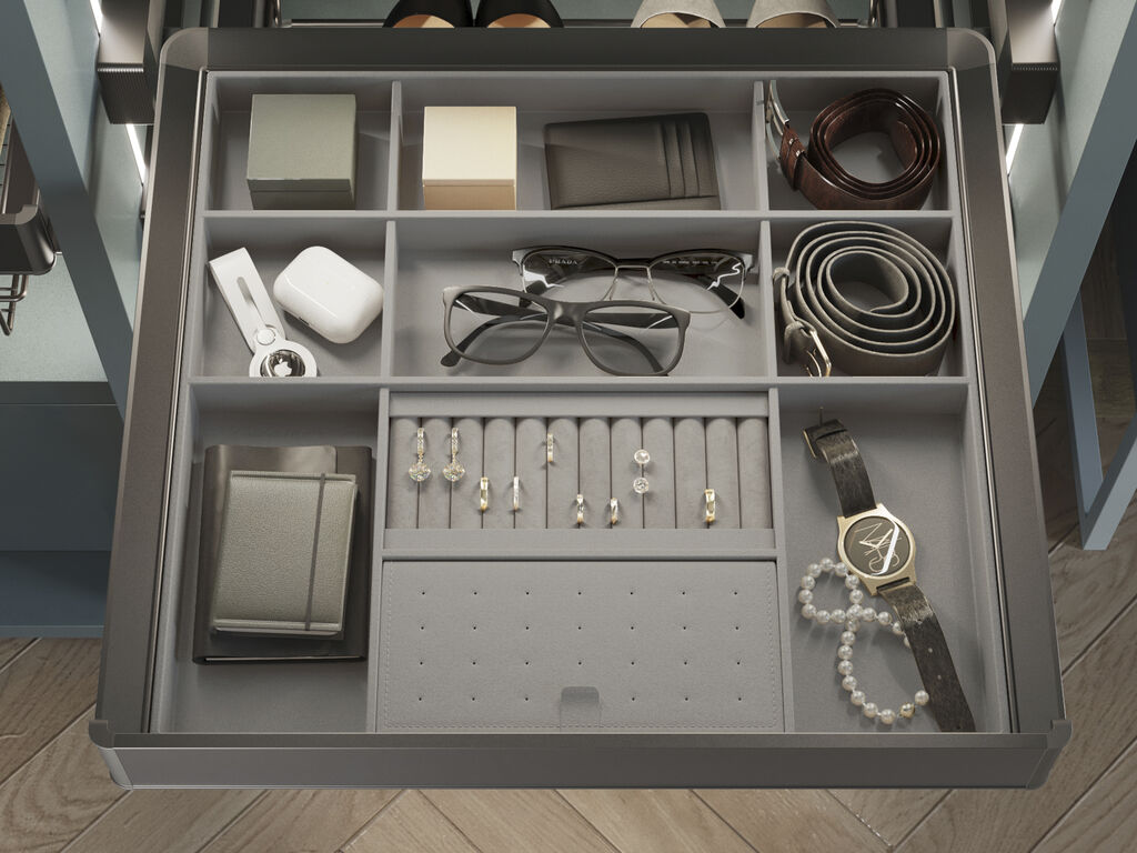 Ehete ja aksessuaaride organiseerimissahtel Quartz, sobib Quartz universaalse raamiga.