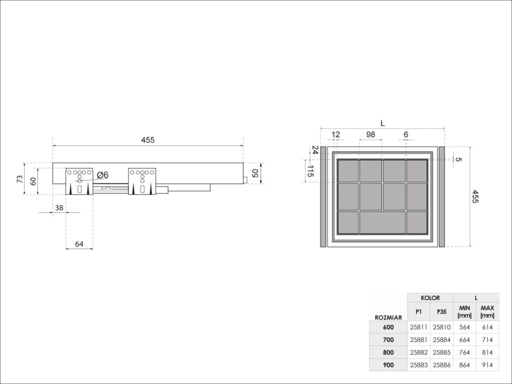Aksessuaaride sahtel SYMPHONY raamiga, SOFT, L664-714mm (M70) alumiin./antratsiit(PU1)