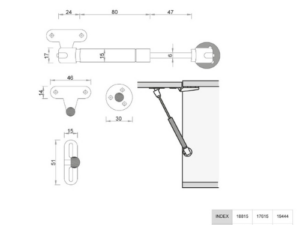Gaasiamort MG15 ülesse avanevale uksele L180mm 80N, hall