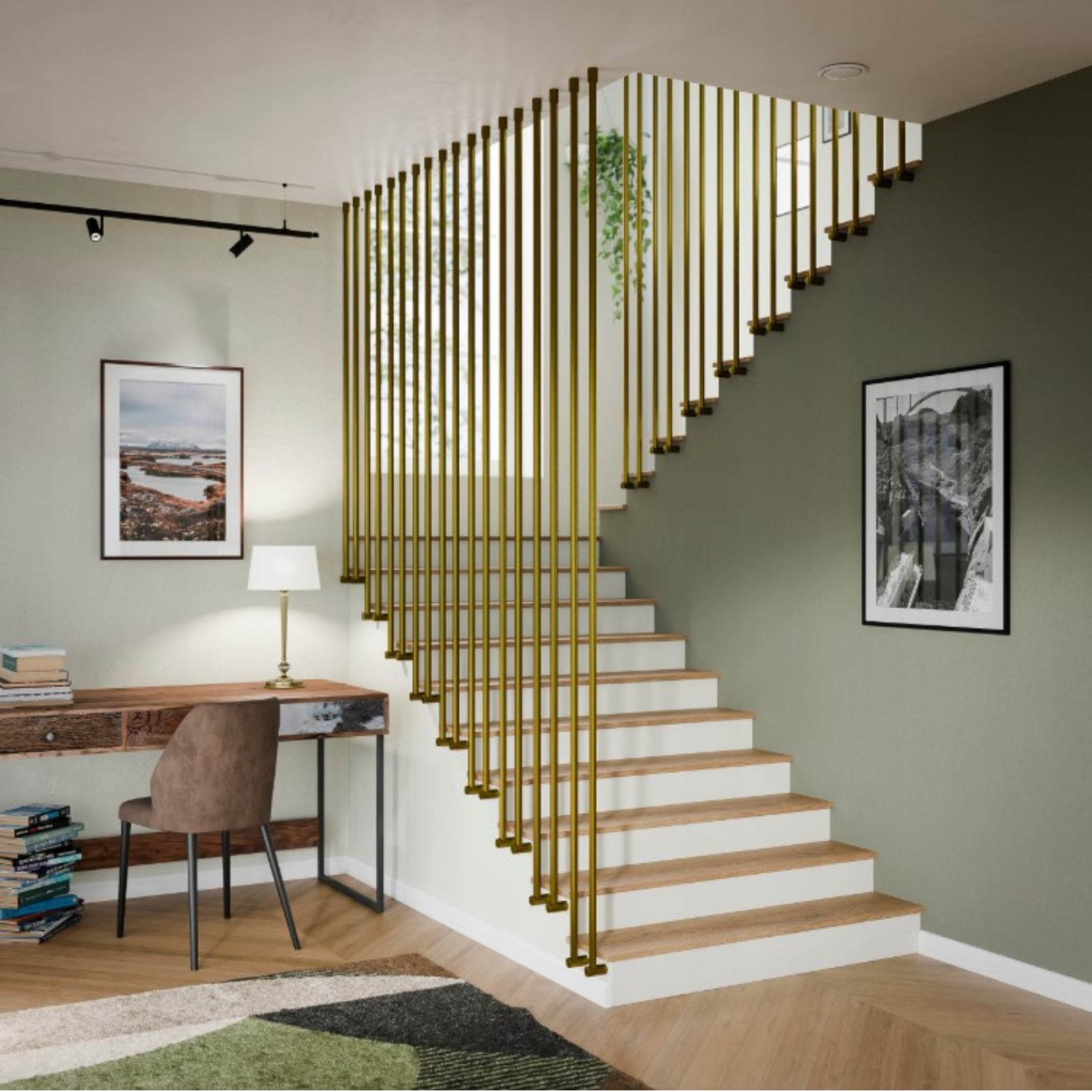 Keskkandur Harfa Sens trepireelingule, Ø25mm, teras/kuldne matt