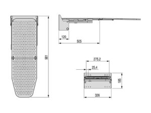 Kokkupandav triikimislaud seinale, 810 x 300 mm, teras/valge