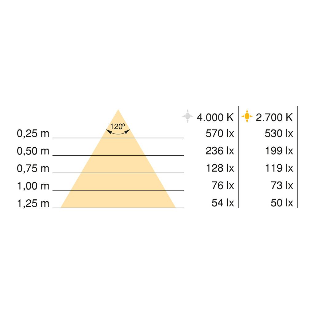 Valgusvihu nurk: 120°