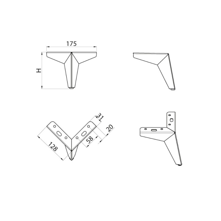 Mööblijalg DNO-724, H135mm, teras/kuldne