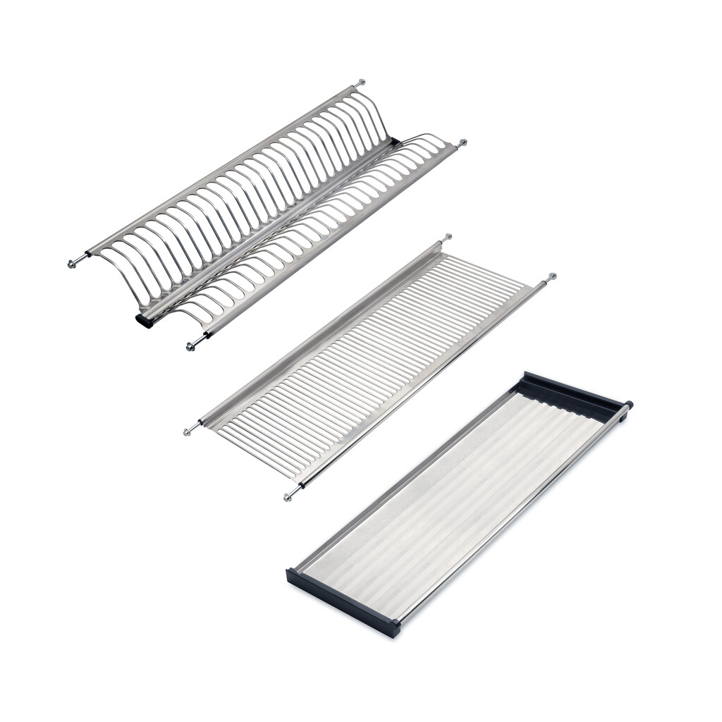 Komplektis: 1 taldrikualus, 1 anumaalus ja 1 eraldi veetilkade kogumisalus (kaitsta kapi sisemust niiskuse eest)