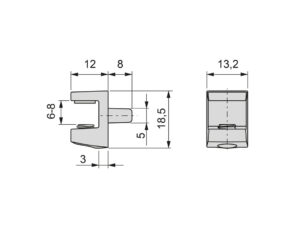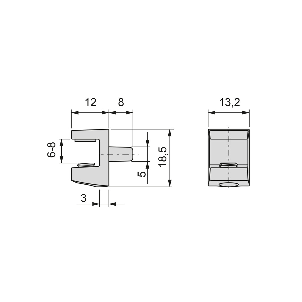 Riiulikandur Evo klaasriiulitele 6-8 mm Ø5 L12 mm, tsink/nikkel (PU 1000)