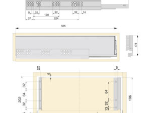 Komplekti kuulub: 1 paar juhtsiine, 1 komplekt külgpaneele, alumine ja tagumine paneel, 1 komplekt eesmise sahtli konkse, kruvid.