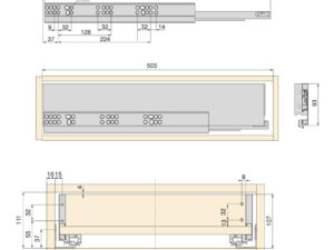 Komplekti kuulub: 1 paar juhtsiine, 1 komplekt külgpaneele, alumine ja tagumine paneel, 1 komplekt eesmise sahtli konkse, kruvid.