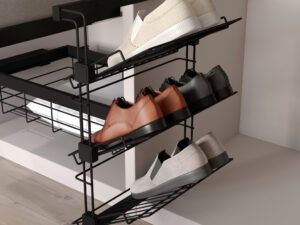 Hack garderoobisüsteemi vasakpoolne vaikselt sulguv jalatsiriiul.