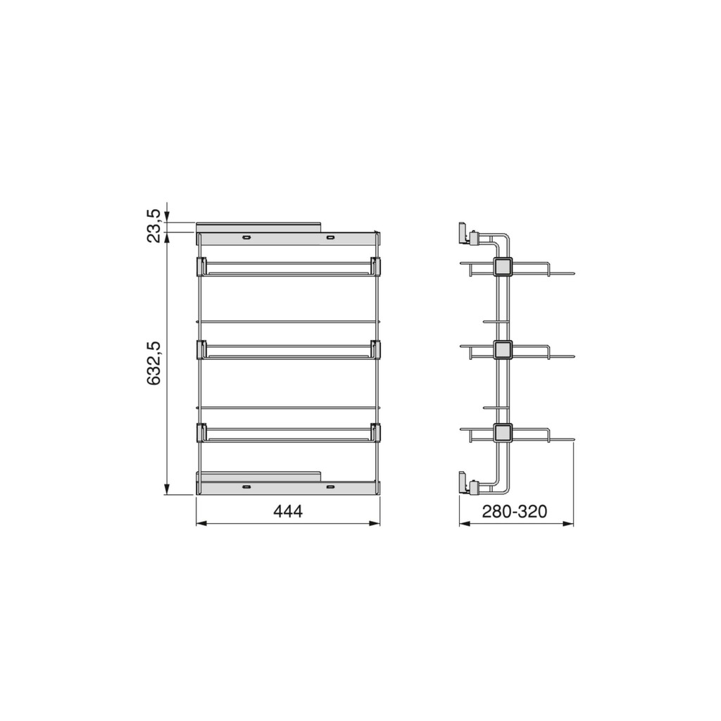Komplektis: 1 külgmine jalatsiriiul, juhtsiinid, kattekorgid, 4 kruvi Ø4x16mm.