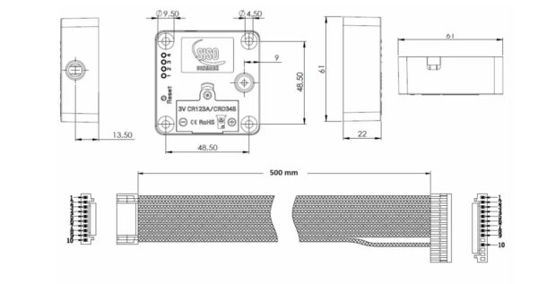 Elektr. lukk Mifare1Mini(13,56MHz)+nuppkaardilugeja, Public/Private/Office 61x61x22mm, plastik/must