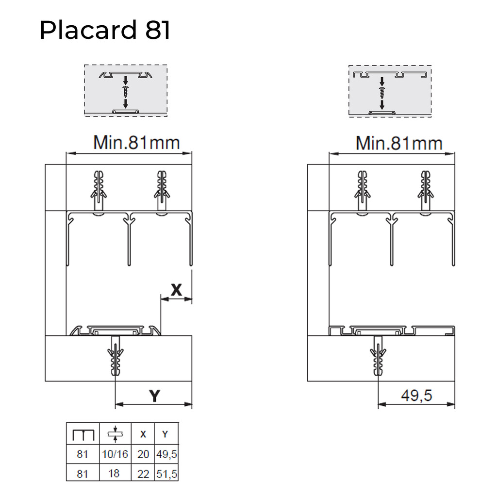 Klamber Placard 74 ja 81 alumisele juhtsiinile, plastik/must ( PU100)
