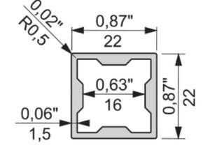 Konstruktsiooniprofiil 22x22mm L3500 mm, alumiinium/kuldne anodeering