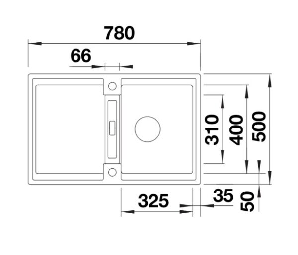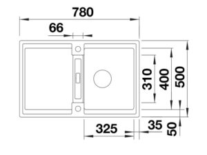 Köögivalamu Blanco ADIRA 45 S 780 x 500mm, silgranit/elevandiluu (soft white)