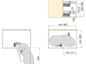 – Kujundatud moodulitele, millel on parempoolne avamine, minimaalne laius 862mm, minimaalne sügavus 500mm ja reguleeritav kõrgus 700-800mm.