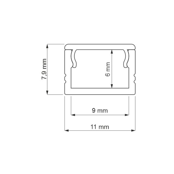 Profiil TWIG23 11×7.9 mm L3000 mm koos opaalkattega, alumiinium/hõbedane