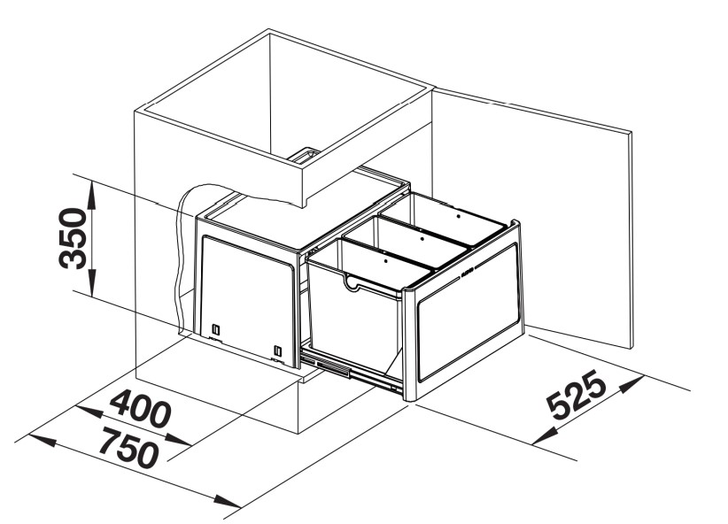 Prügisüsteem BLANCO BOTTON Pro 60/3 600mm kappi, 3 ämbriga 3x13L