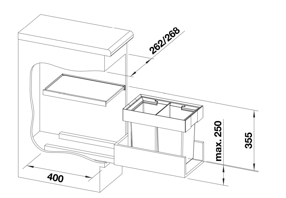 Prügisüsteem BLANCO Flexon II 30/2 300mm kapi sahtlisse, 2 ämbriga 2x8L