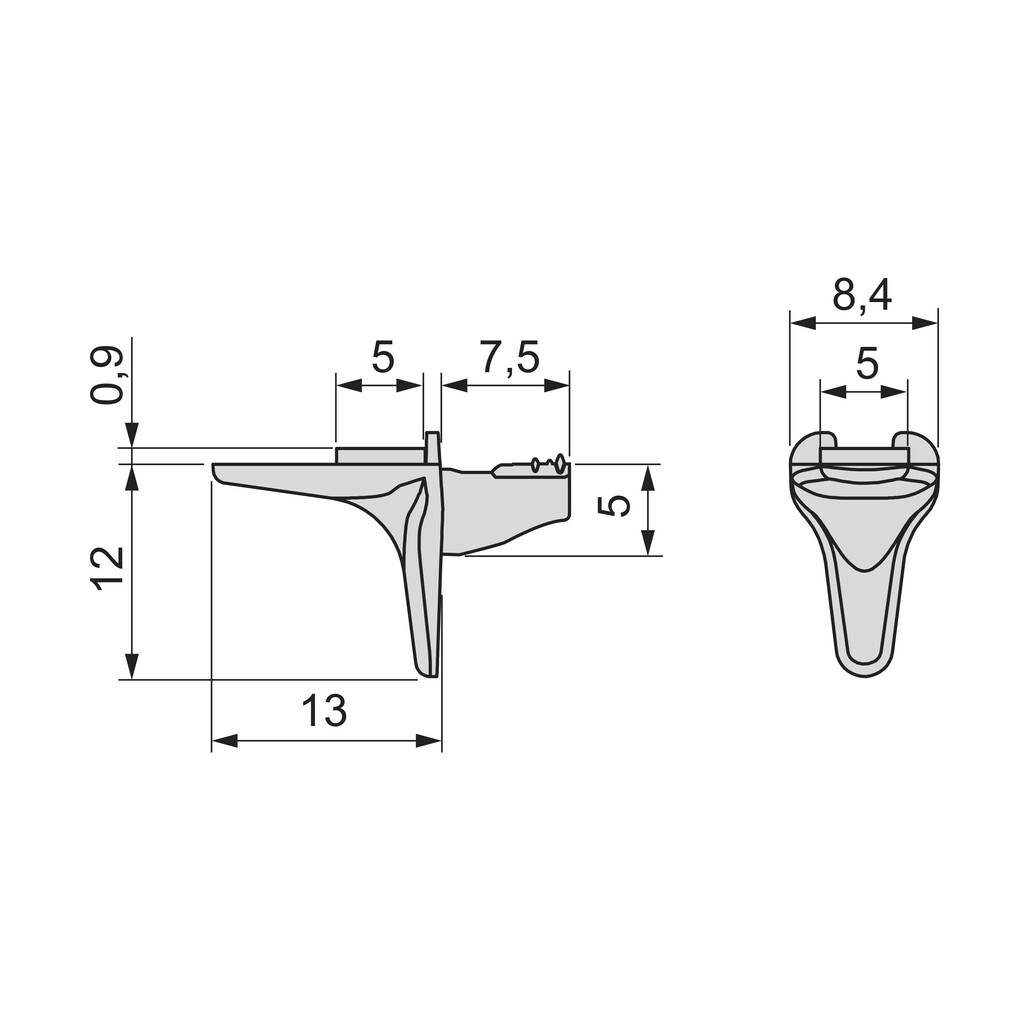 Riiulikandur Beak klaasriiulitele 6-8 mm Ø5 L13 mm, tsink/must (PU 1000)