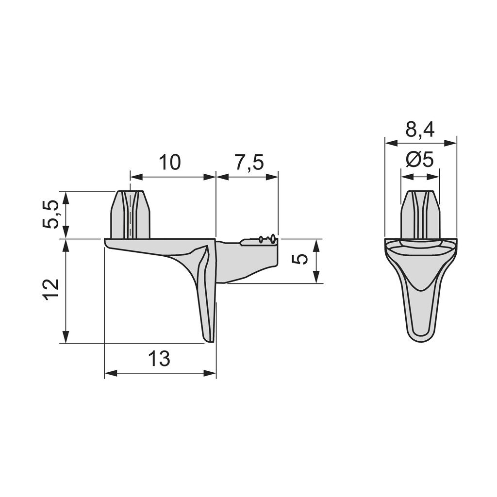 Riiulikandur Beak puitriiulitele Ø5 L13 mm, tsink/must (PU 1000)