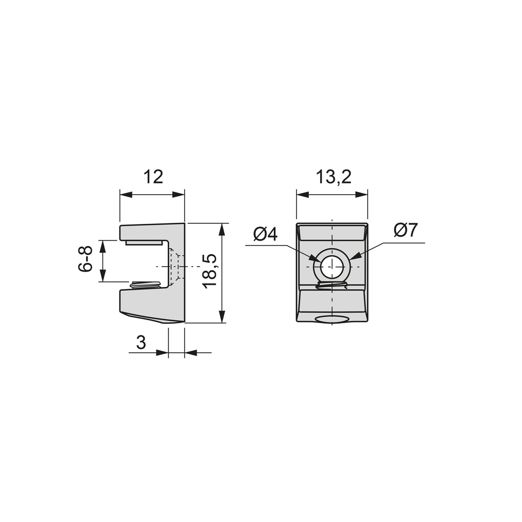 Riiulikandur Evo klaasriiulitele 6-8 mm Ø4 L12 mm, tsink/must (PU 1000)