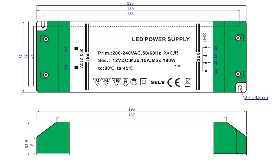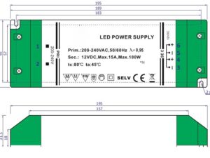 Toiteplokk 24V/8,33A 200W, ilma kaabliteta, plastik/valge 195x67x31,5mm