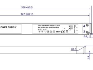 Toiteplokk SLIM 24V/10A 240W, ilma kaabliteta, plastik/valge 356.4×32.1×22.3mm