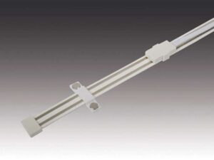 Toitesiin FLAT-TRACK valget värvi plastkorpusega, mõeldud riiulite professionaalseks ja esitlevaks valgustamiseks ilma nähtavate või segavate kaabliteta.