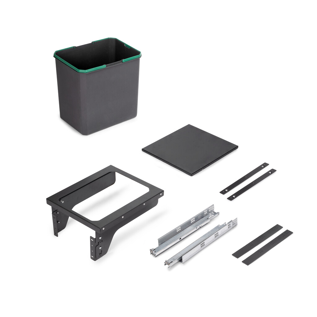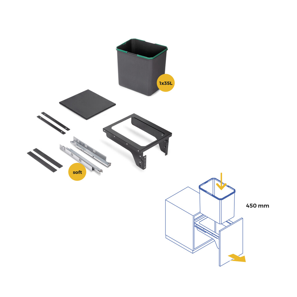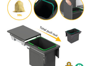 Komplekt sisaldab 35-liitrist prügikasti ja käepidet mugavaks eemaldamiseks. Lisaks on sellel kaas, mis toimib riiulina.