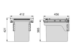 Prügikast on esipaneeli avamisel täielikult moodulist väljatõmmatav. Varustatud 30 kg kandevõimega täielikult väljatõmmatavate siinidega ning pehme sulgumise (soft close) mehhanismiga.