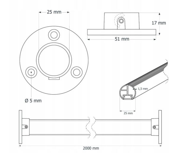 Komplektis: 1 LED riidepuutoru, 2 otsakandurit, kinnituskruvid