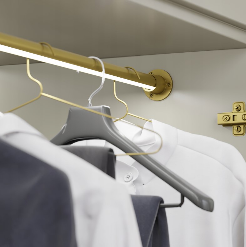 Ümar LED riidepuutoru PRO II Ø25mm, L2000mm, 2 pikendatud külgkandurit, alumiinium/kuldne matt