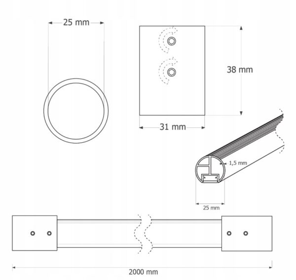 LED-riidepuutoru SMART Ø25 mm koos kahe kraeta otsakanduriga
