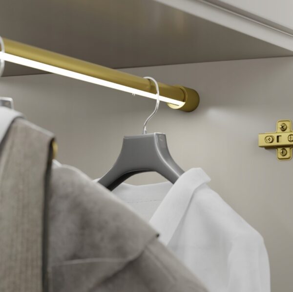 Ümar LED riidepuutoru SMART LED Ø25mm, L2000mm, 2 otsakandurit (kraeta), alumiinium/kuldne matt