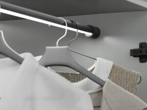 Ümar LED riidepuutoru SMART LED Ø25mm, L2000mm, 2 otsakandurit (kraeta), alumiinium/must struktuur