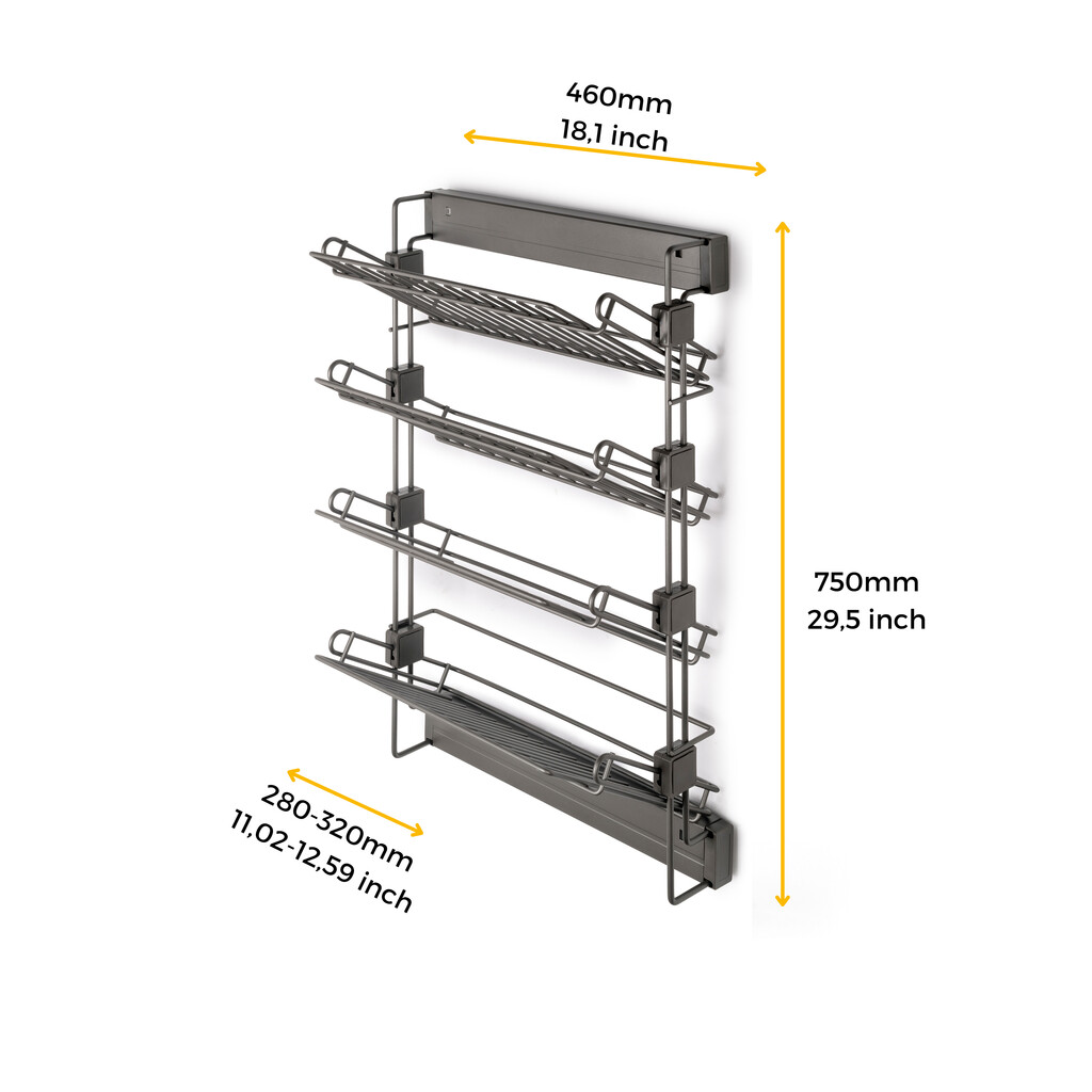 Väljatõmmatav jalatsiriiul Quartz 4-riiuliga H750mm, PAREM, teras/titaanium