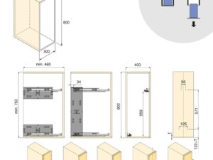 – Riiulid on mõeldud 400 mm laiuste, 800 mm kõrguste ja minimaalselt 460 mm sügavate moodulite jaoks. Sobib 16, 18 või 19 mm paksuste paneelide külge.