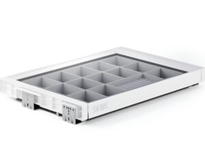 Aksessuaaride sahtel SYMPHONY raamiga, SOFT, L564-614mm(M60) alumiin./valge (PU1)