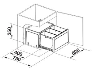 Prügisüsteem BLANCO Flexon II 60/2 600mm kapi sahtlitesse, 2 ämbriga 1×19+1x30L