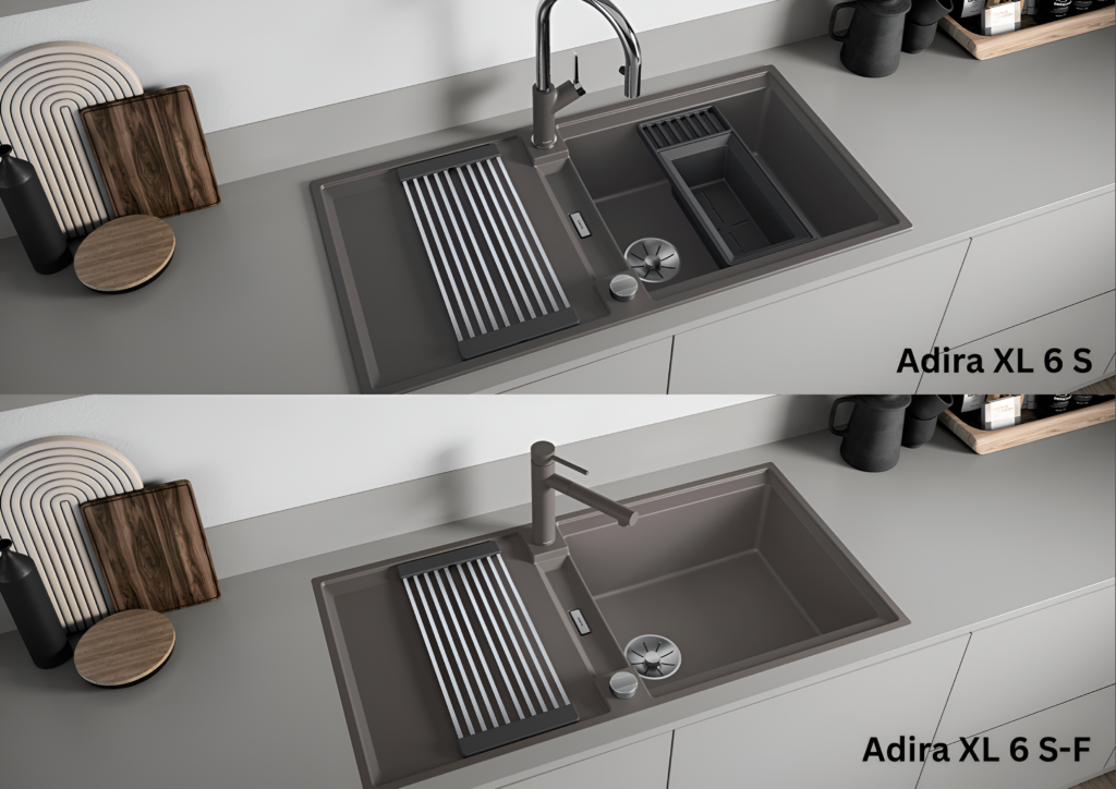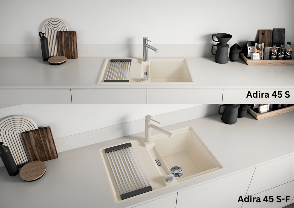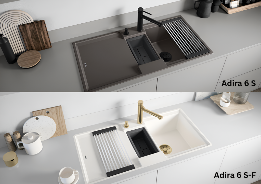 Lisaks on saadaval praktilised lisatarvikud, nagu kokkupandav Adira rest, mida saab kasutada täiendava tööpinnana või nõudekuivatina. Adira 6 S ja 6 S-F mudelid sisaldavad ka multifunktsionaalset sõela, mis sobib nutikalt valamu või Blanco aluskappide süsteemidesse.