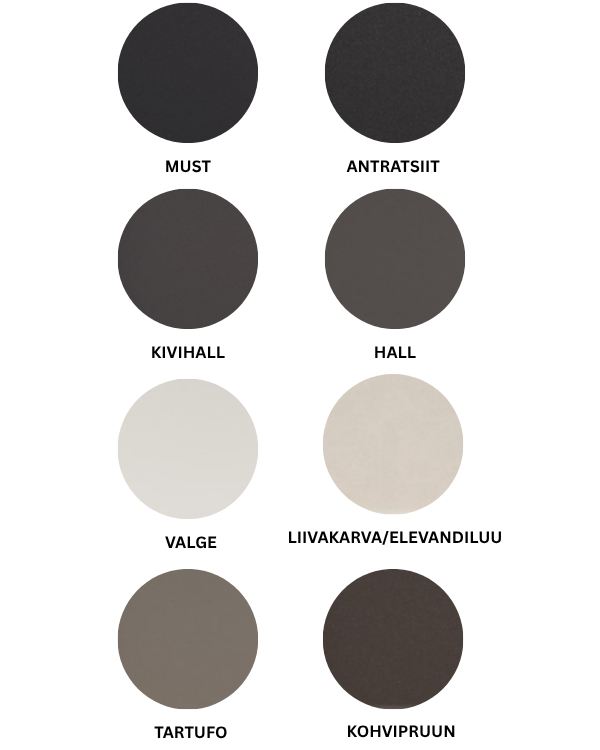 Silgranit valamud on saadaval laias värvi- ja disainivalikus, alates klassikalisest valgest ja sügavmustast kuni modernsete hallide ja soojade pruunideni. Tänu värvide UV-kindlusele ei tuhmu toonid aja jooksul ning pind säilitab oma särava ja värske välimuse ka aastate pärast.