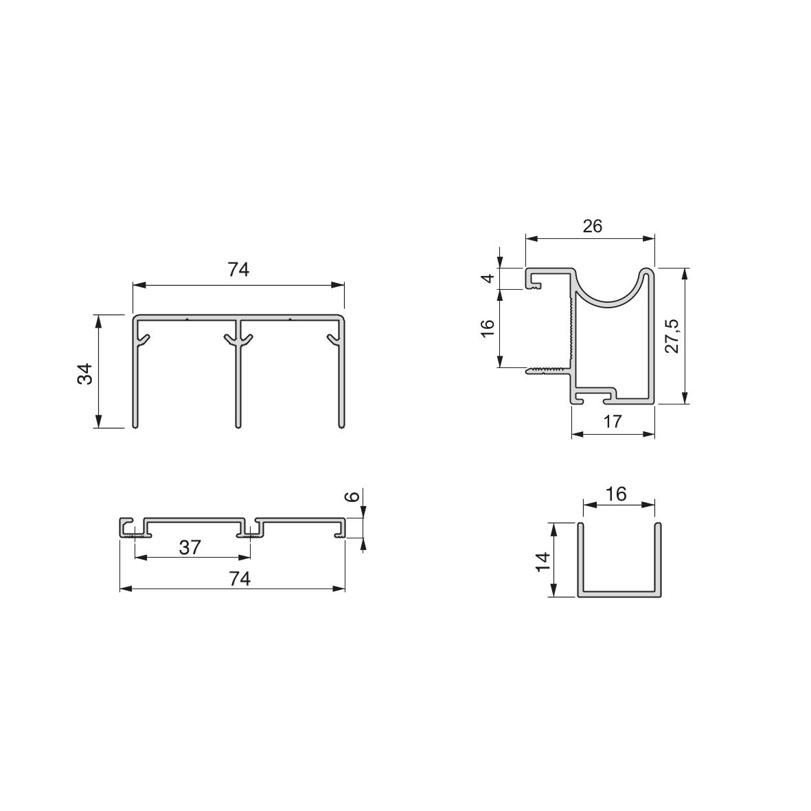 – Alumine juhtsiin(74 mm x 6 mm), 2350mm x 1tk