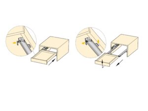 Osaliselt väljatõmmatavad, vajutamisega avatavad liugurid sahtlitele sügavusega 490 mm.