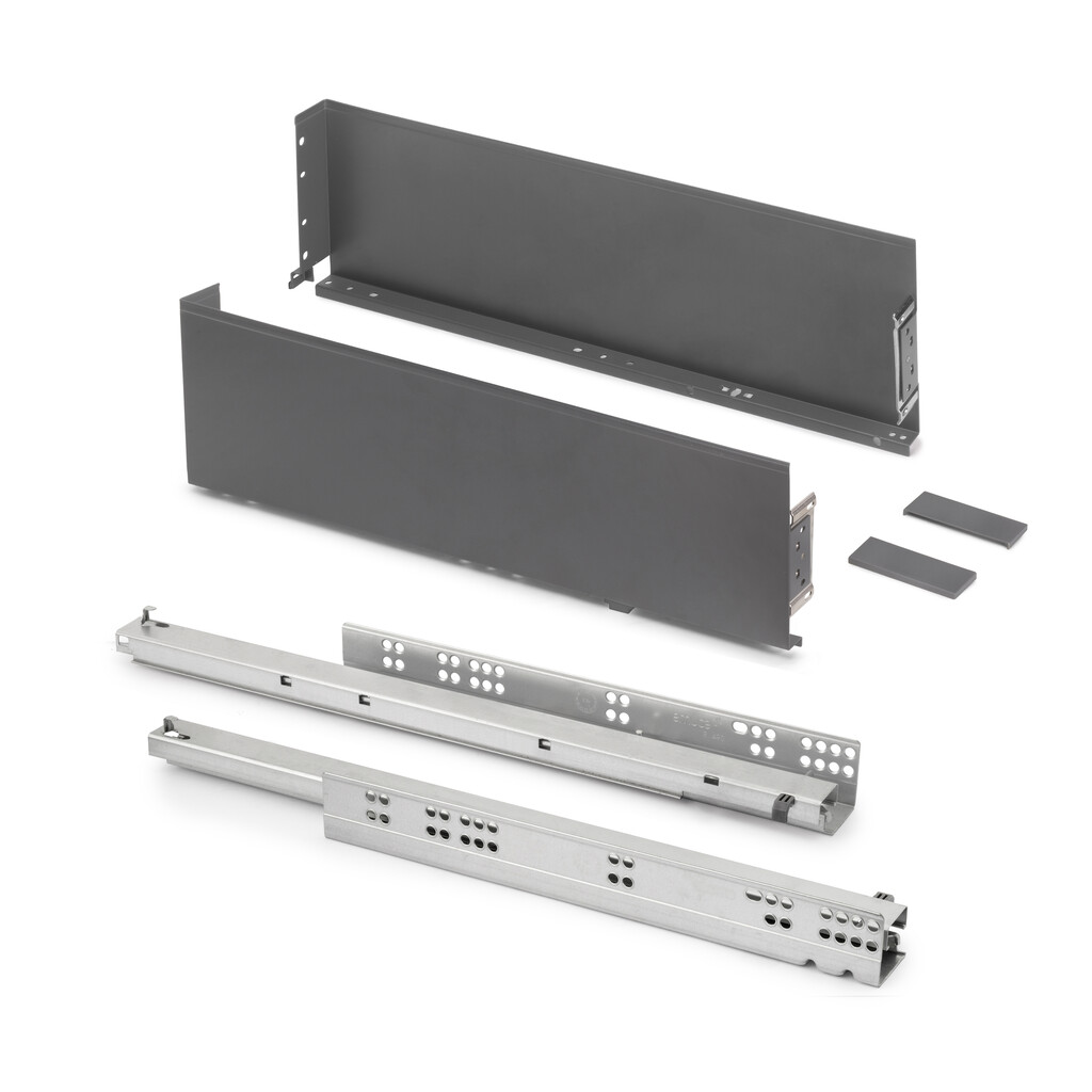 Komplekt sisaldab: 2 küljepaneeli, 1 komplekti vaikselt sulguvaid sahtlisiine ja küljekatteid sahtlikülgedele.